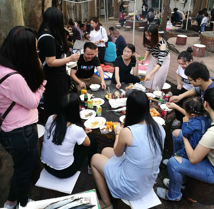 就算夜幕降臨大家還是津津有味地圍坐在一起,熱情絲毫不減退