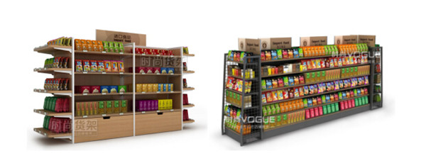1、根據超市的定位選貨架材質(材質的選擇:鋼木or鋼制)