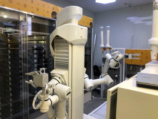 7月23日,首家無人蘇寧小店在南京試營業,步入店內,一個長相古怪、頗具未來感的機械臂成為店內唯一的“服務員”,它有類似于人體手臂的結構,可以上下左右靈敏移動,可以為消費者提供簡單的餐飲服務。消費者只需點擊屏幕上的產品下單后,場內的多支機械臂就會得到指令,為消費者準備食品。據悉,蘇寧易購Biu的擬人型雙臂機器人采用最新的協作型一體化關節機械臂為主要動作執行單元,通過雙臂的協同配合和精密控制實現商業上復雜場景下工作的操作,新奇獨特的外觀和高效便捷的操作獲得了消費者的認可。