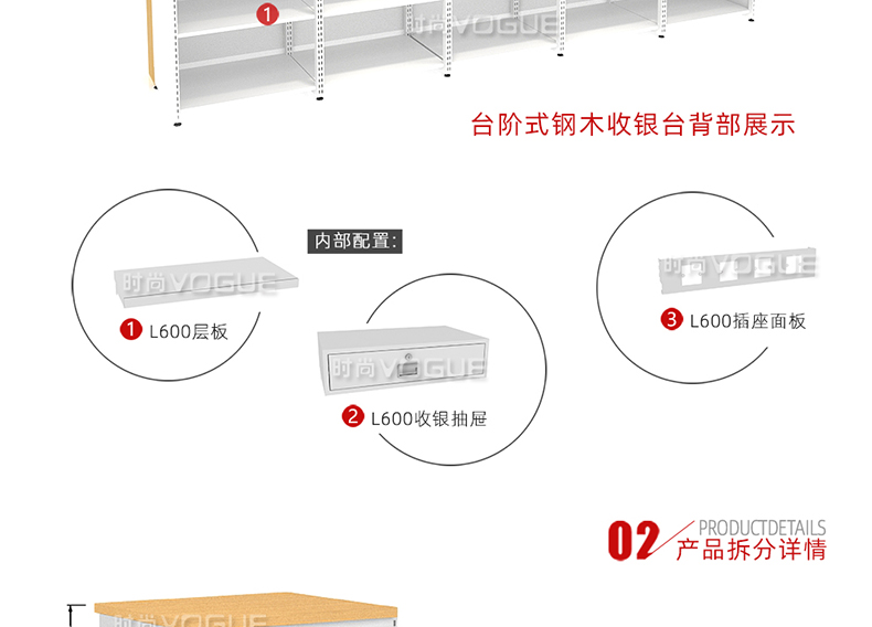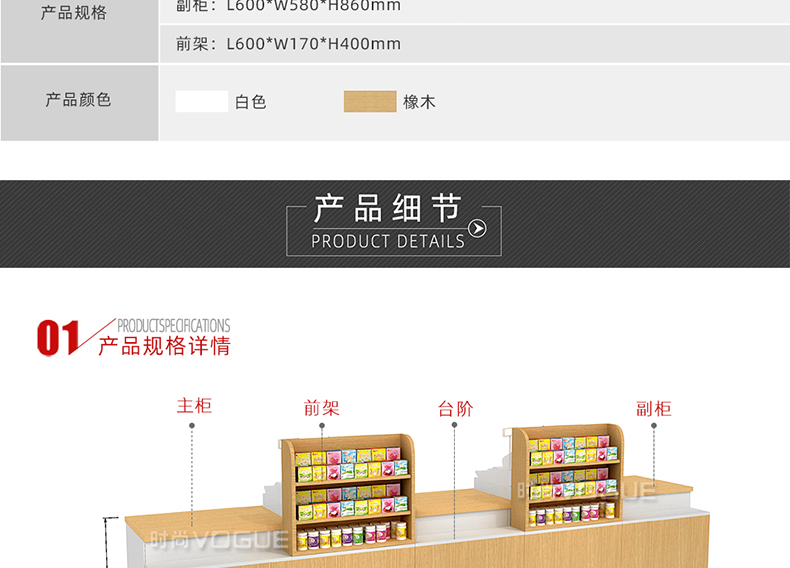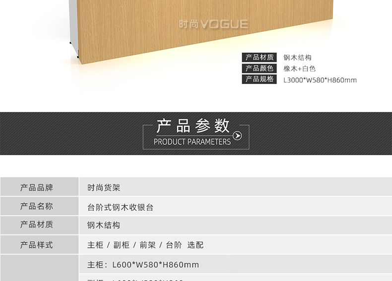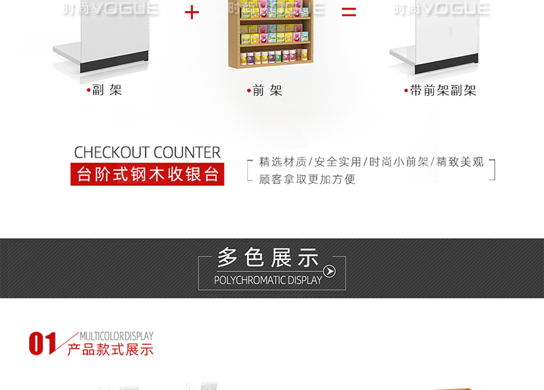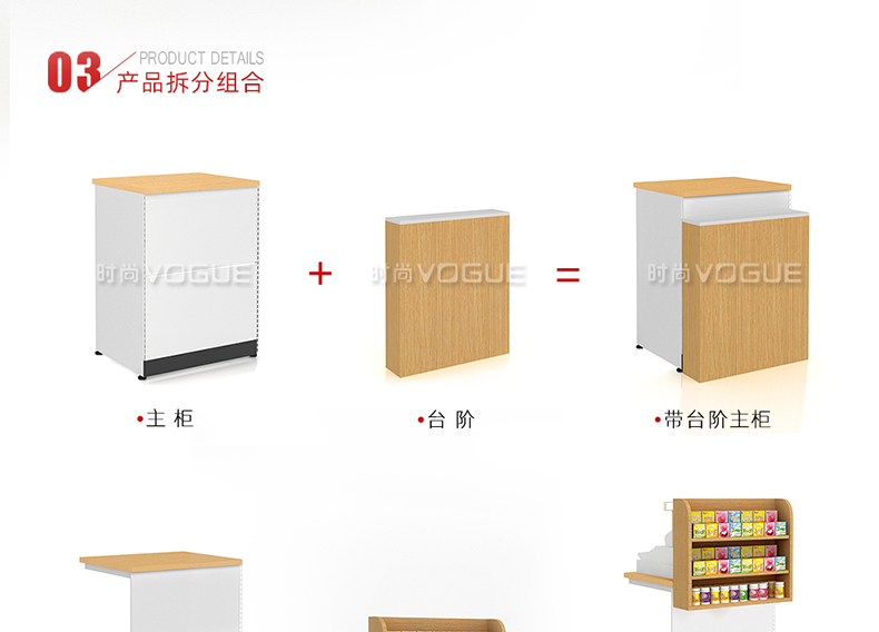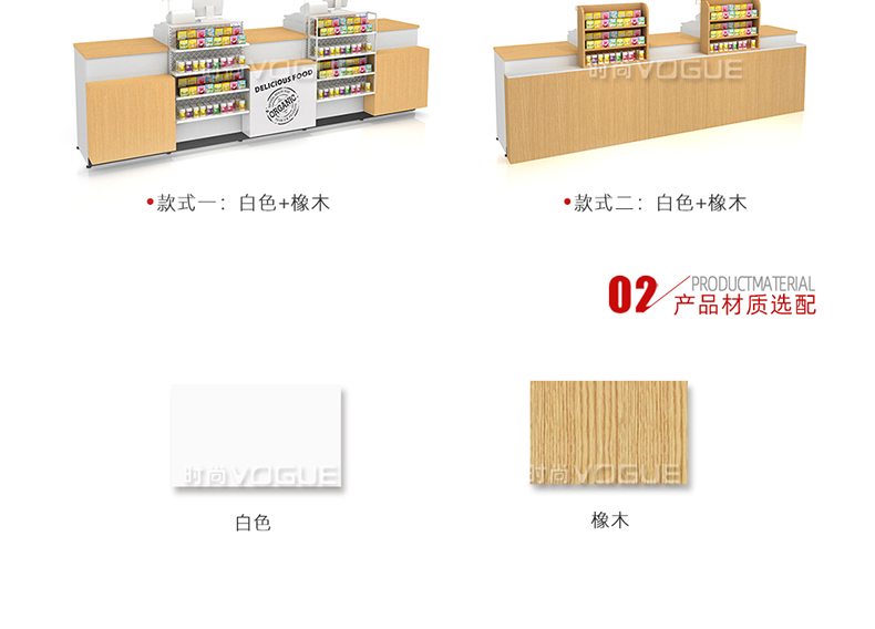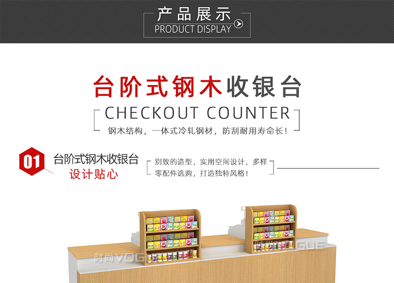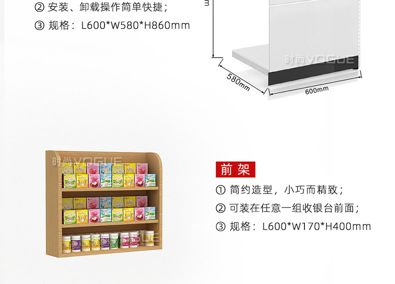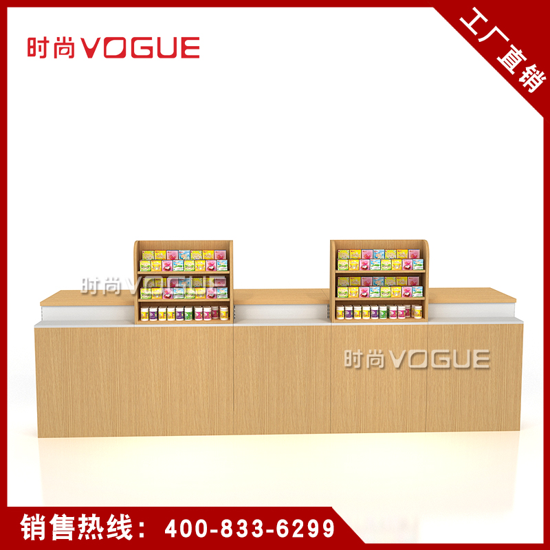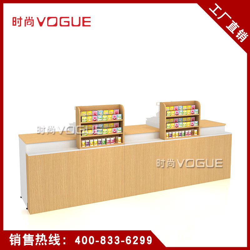 • 產品描述:這是時尚貨架針對母嬰店收銀區陳列最新推出的一款紅櫻桃木紋收銀臺。