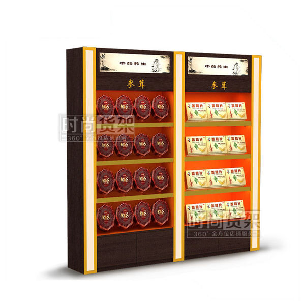 藥店貨架_參茸前柜(紅櫻桃木紋)