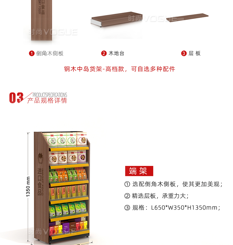 • 產品描述:便利店雙面零食貨架由深圳貨架廠時尚貨架打造,應用于便利店內的食品區域。