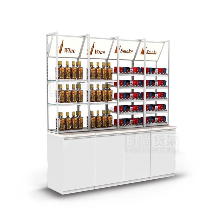 【描述】此款便利店收銀區煙酒架采用分體式設計,即可獨立使用,也可按需求組合;框架式的結構,整體采用冷軋鋼制工藝,一體成型的亞克力材質,加厚的玻璃層板,讓承重能力再升級。卡扣式層板均可調節間距和傾斜角度,根據不同酒品的存儲需求,靈活改變,使陳列整齊的同時更具美觀性,配上磁吸燈箱,和便利店收銀臺形成收銀區,彰顯店鋪高端的形象。