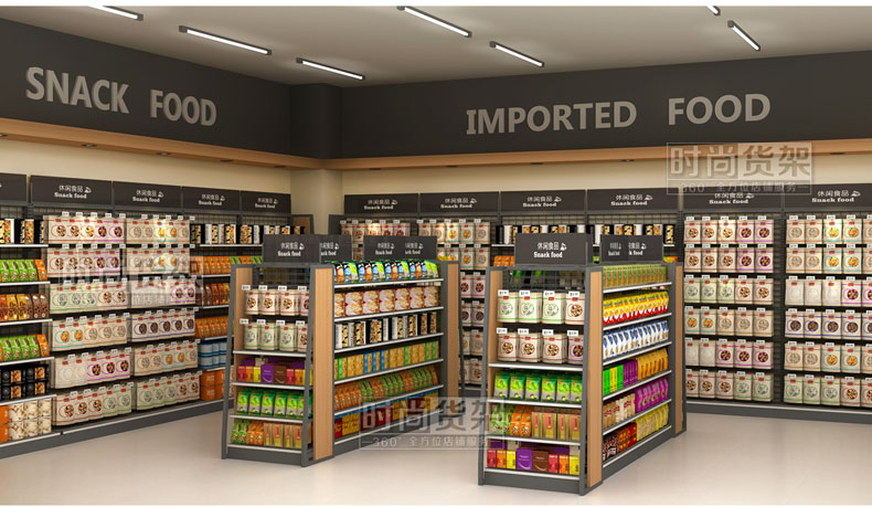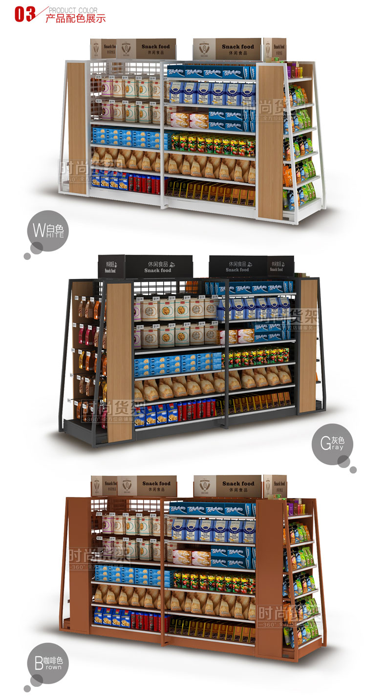 此款超市貨架是深圳貨架廠【時尚貨架】專為超市食品區域打造的一款通透性更強的網背板零食貨架。更多超市貨架可點擊http://www.zzyrjg.cn/supermarket/spzsq/,如需采購超市貨架,請咨詢客服!