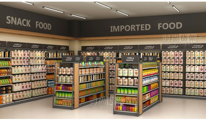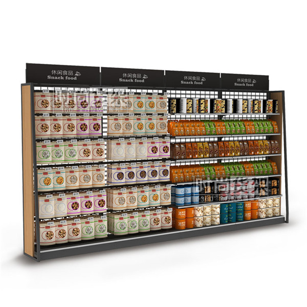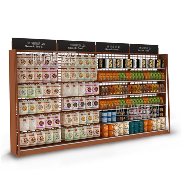 這是時尚貨架專為超市食品區(qū)打造的超市單面零食貨架,想了解超市雙面食品貨架請點擊:http://www.zzyrjg.cn/supermarket/spzsq/103.html。