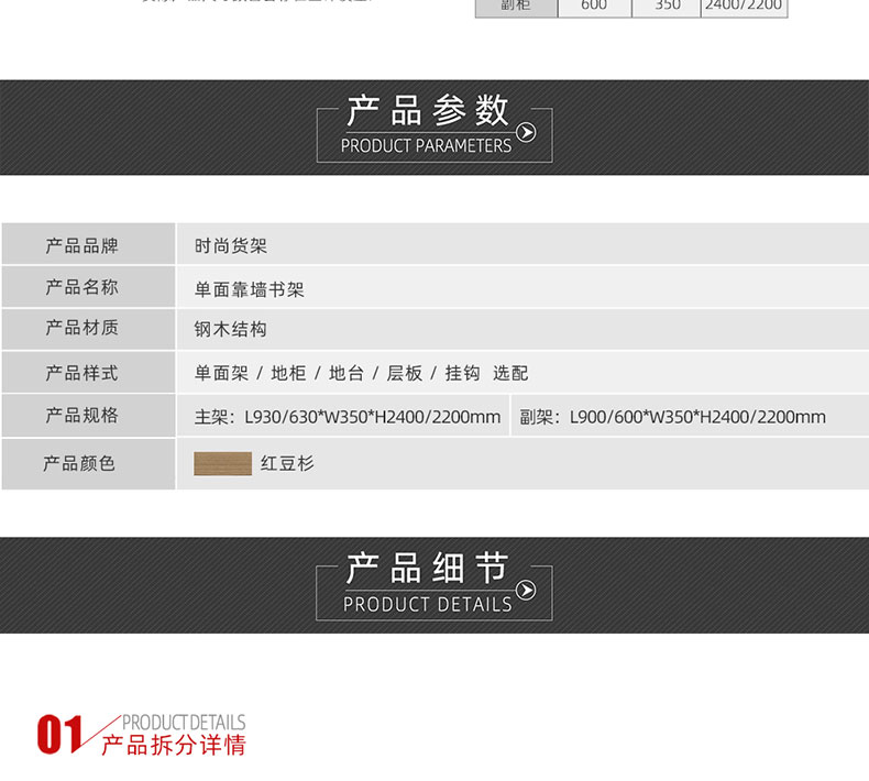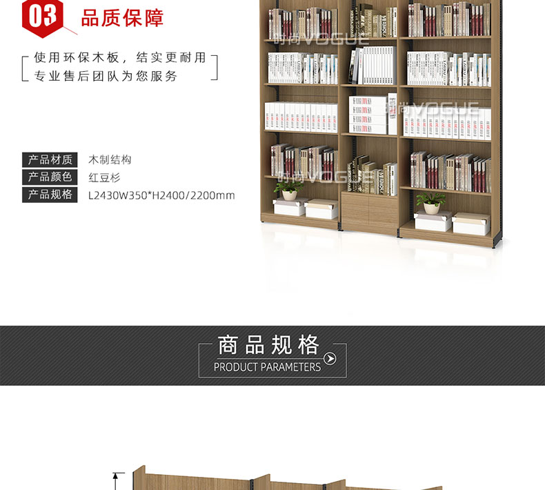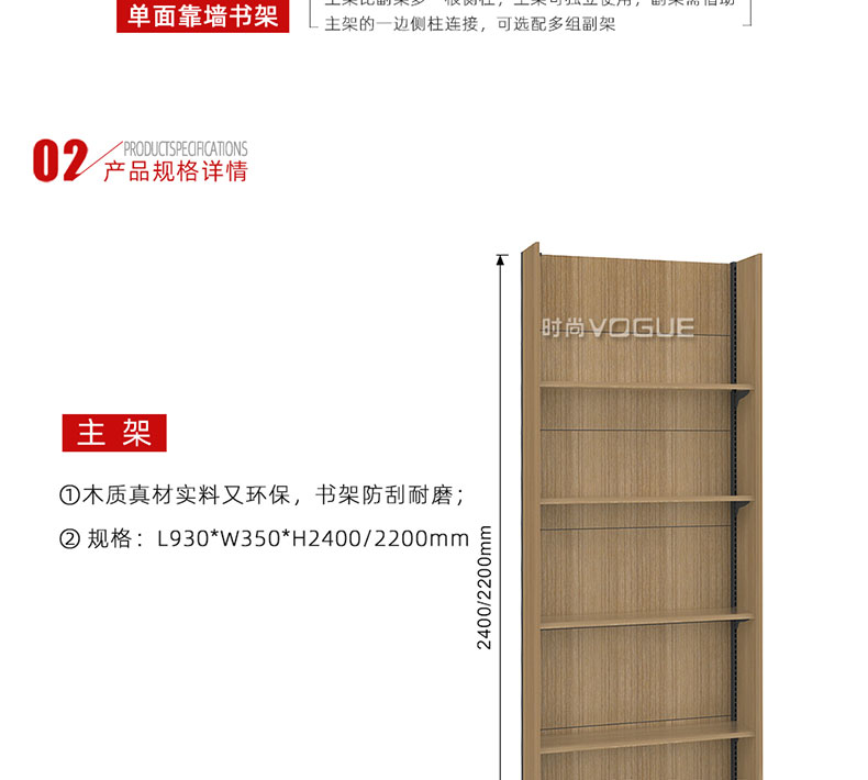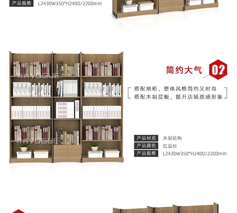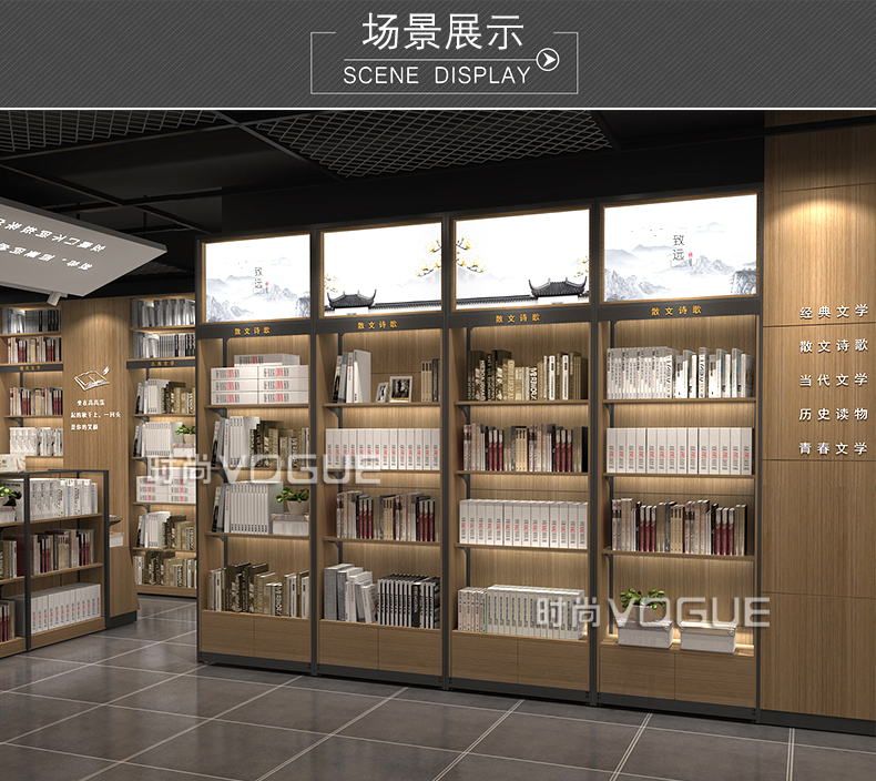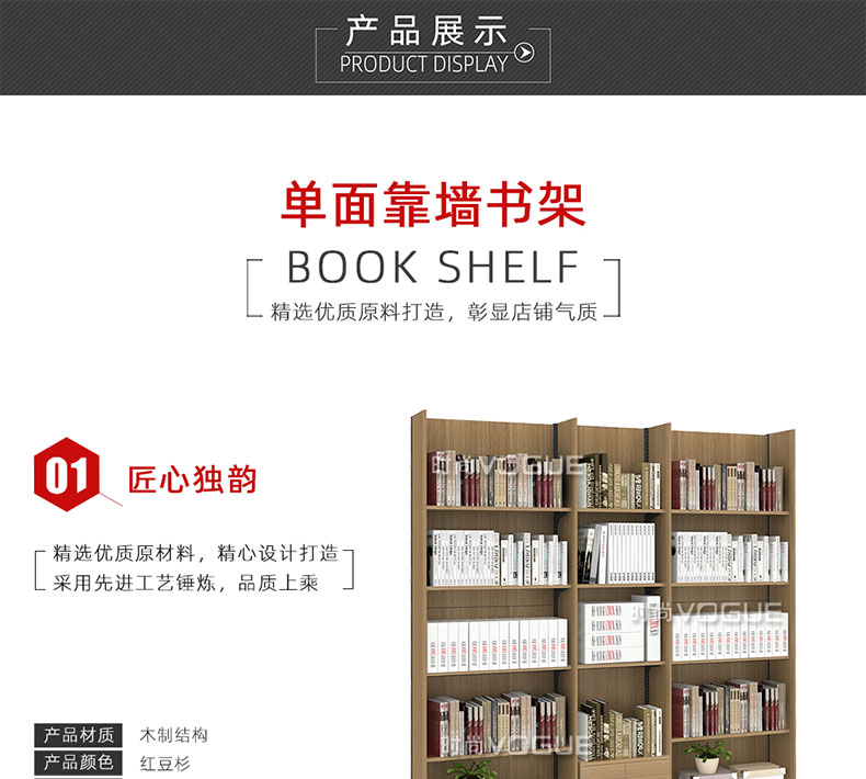 • 產品描述:這是時尚貨架專為書店圖書陳列打造的一款圖書靠墻書架。